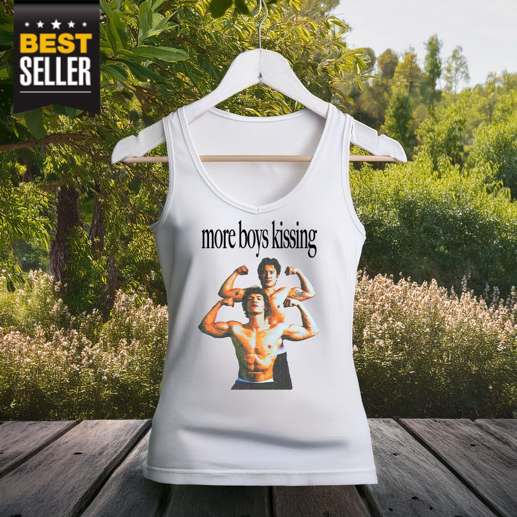 The message More Boys Kissing is direct, confident, and unapologetic. Printed on a v-neck t-shirt, it balances bold meaning with a classic silhouette, making it perfect for those who want expressive fashion without sacrificing style.